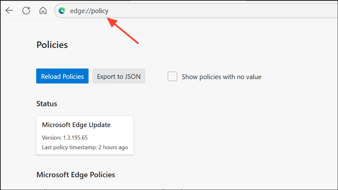 edge://policyin Edge’s address bar to review enforced policies.