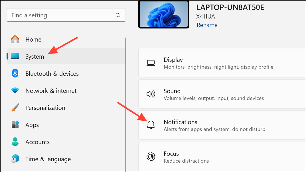 Step 1: Open the Windows Settings app by pressing Windows key + I. In the Settings window, select System, then click Notifications from the left sidebar.