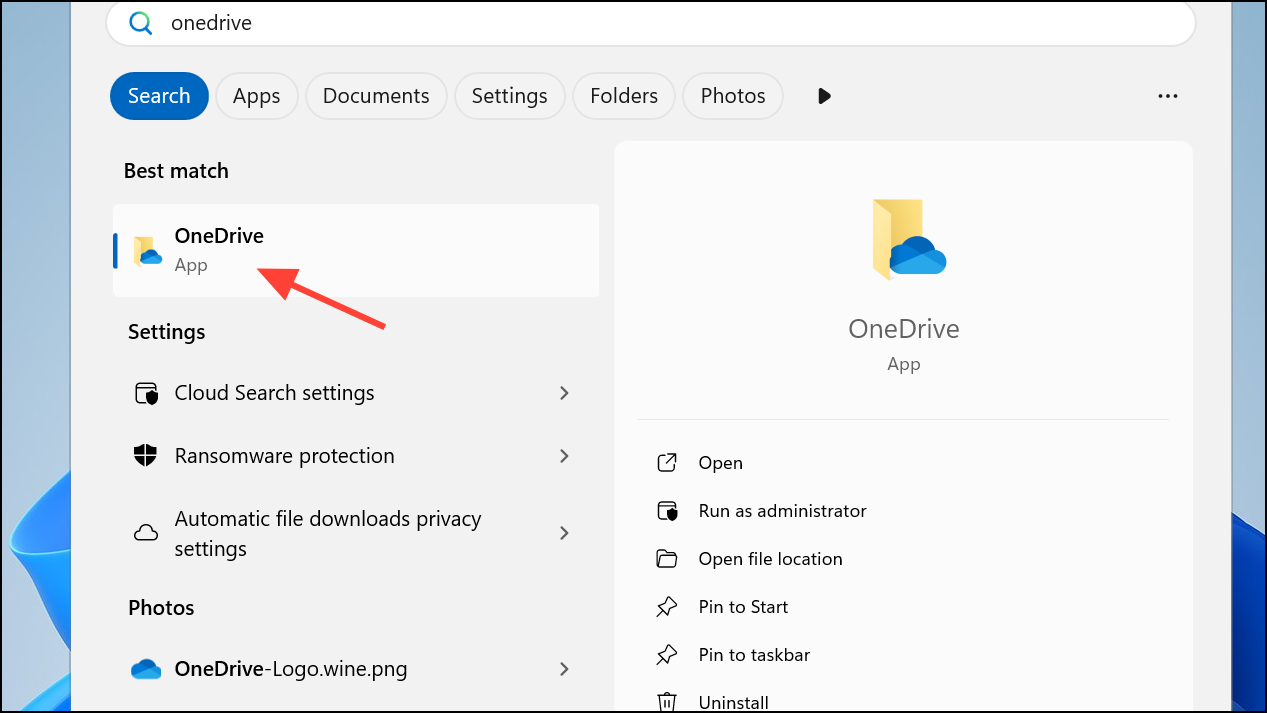 Step 3: After a few moments, manually restart OneDrive by searching for “OneDrive” in the Start menu and launching the desktop app.