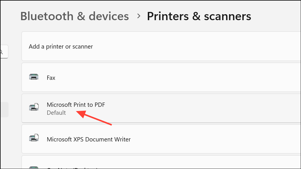 Step 3: Click on your actual printer in the list (turn it on and add it if it’s not visible), then select Set as default. If you don’t have a physical printer, you can install a generic printer driver such as Microsoft Print to PDF and set it as default.