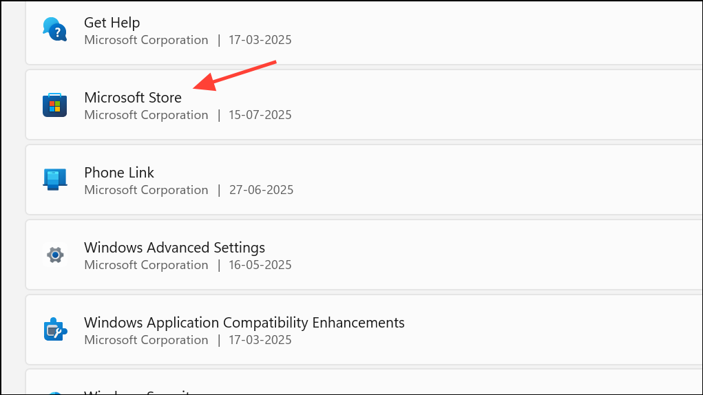 Step 5: Close the Xbox app once all components are installed. Open Windows Settings, navigate to the Apps section, and check under Installed Apps to confirm that Microsoft Store has returned.