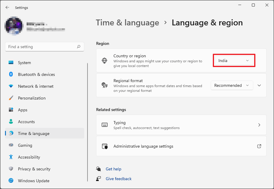 - Under the Region section, ensure your correct Country or region is selected from the dropdown menu.