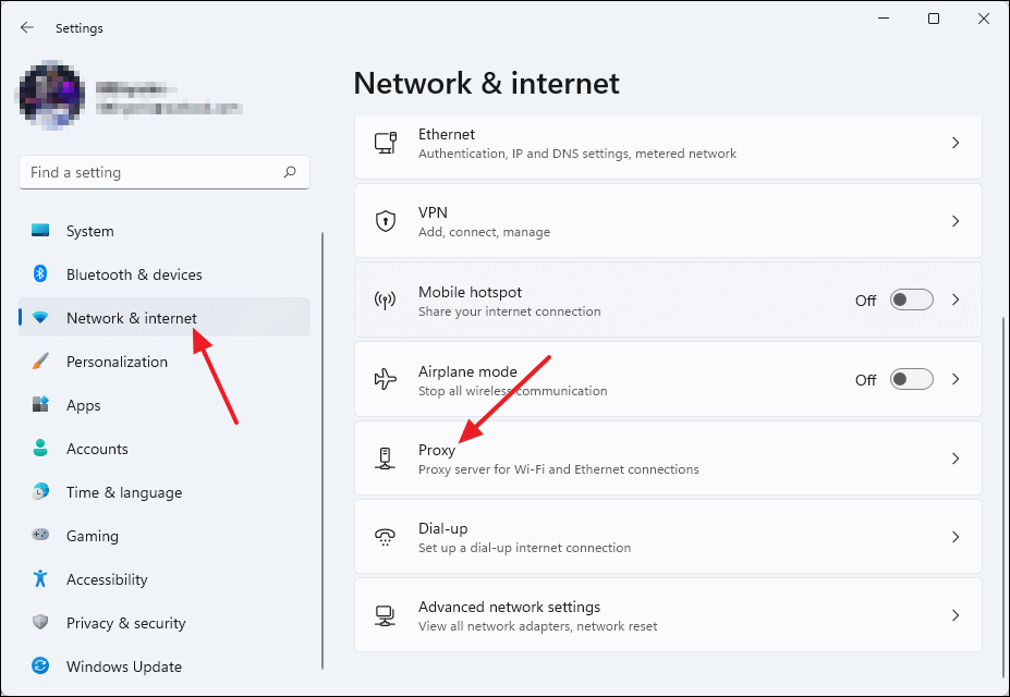 - Open Settings and navigate to Network & internet, then click on Proxy.