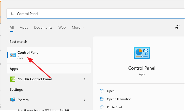 - Open the Control Panel by searching for it.