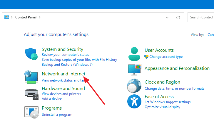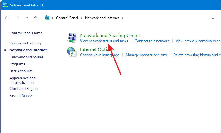 - Click on Network and Internet, then select Network and Sharing Center.