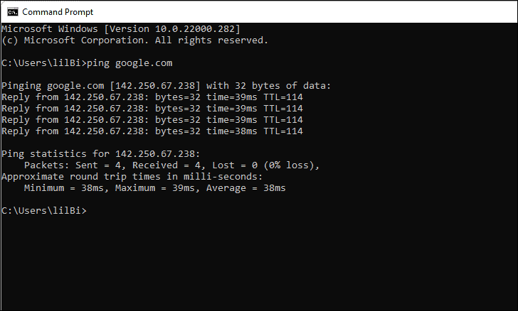 ping google.comand pressEnter.