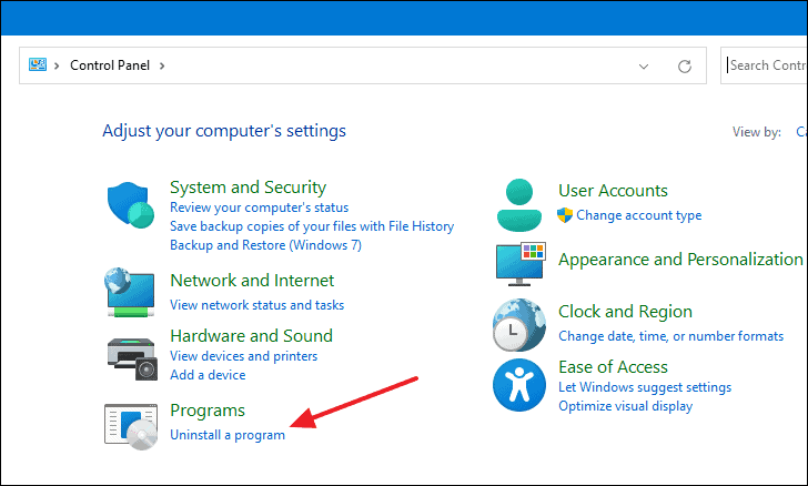 - Click on Uninstall a program under Programs.