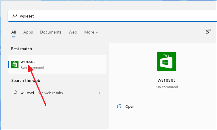 Searchicon in the taskbar and typewsreset. - Select wsreset from the search results.