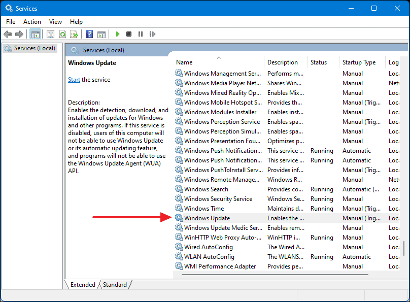 - Scroll down to find Windows Update, and double-click on it.