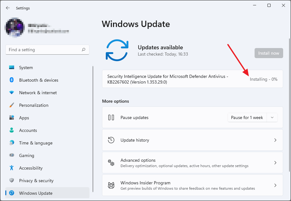- Open Settings and select Windows Update from the left sidebar.