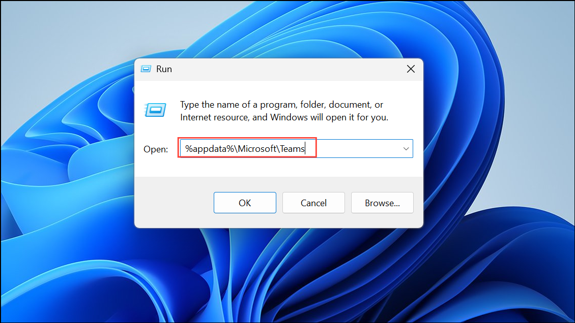 Step 2: Press Windows + R to open the Run dialog. Enter %appdata%\Microsoft\Teams and press Enter.