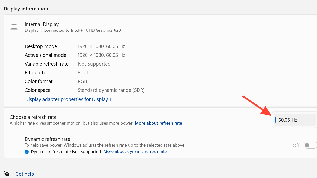 Step 2: In the same menu, select Advanced display and set your refresh rate to 60Hz or the lowest available option.