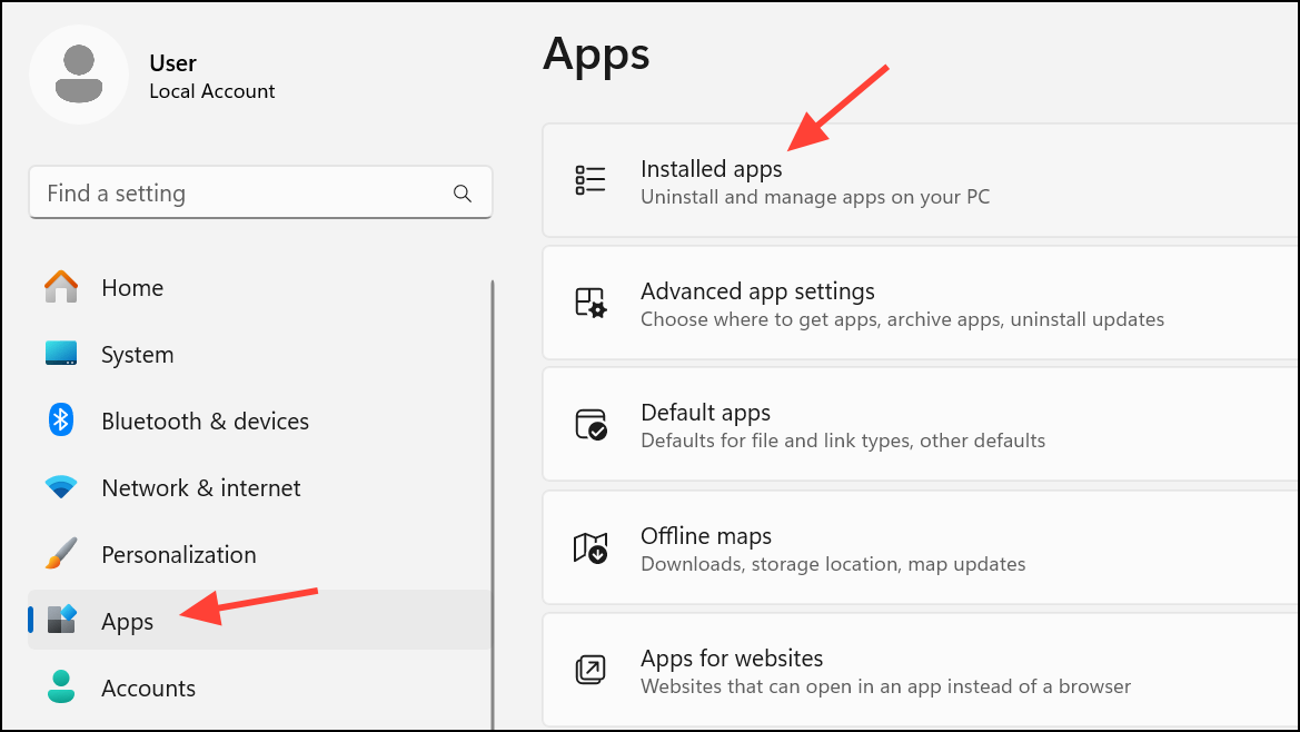Step 1: Open Settings and go to Apps > Installed apps.