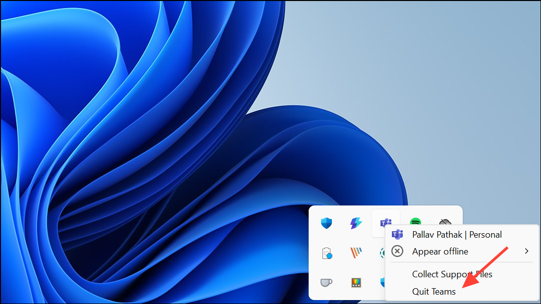 Step 1: Fully exit Microsoft Teams by right-clicking the Teams icon in the system tray and selecting Quit. This ensures no Teams processes are running in the background.