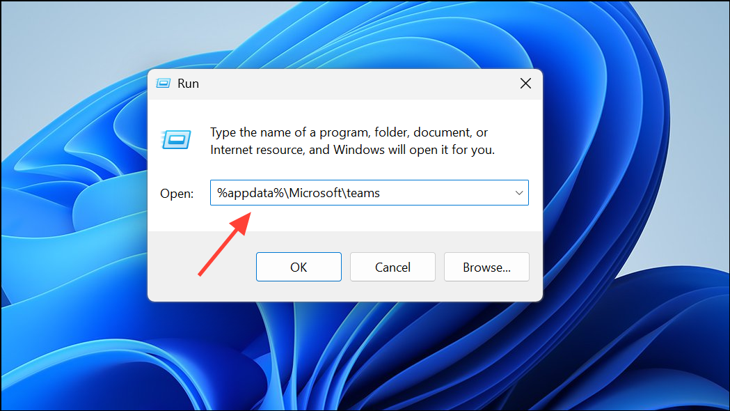 Step 3: Type %appdata%\Microsoft\teams and press Enter. This opens the Teams data folder.