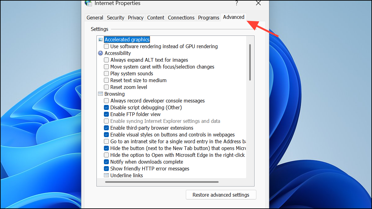 Step 2: Navigate to the Advanced tab.