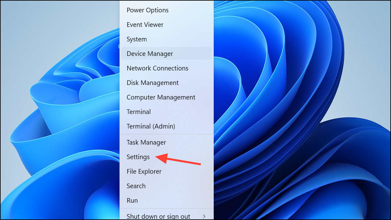 Step 1: Right-click the Start button and select Settings.
