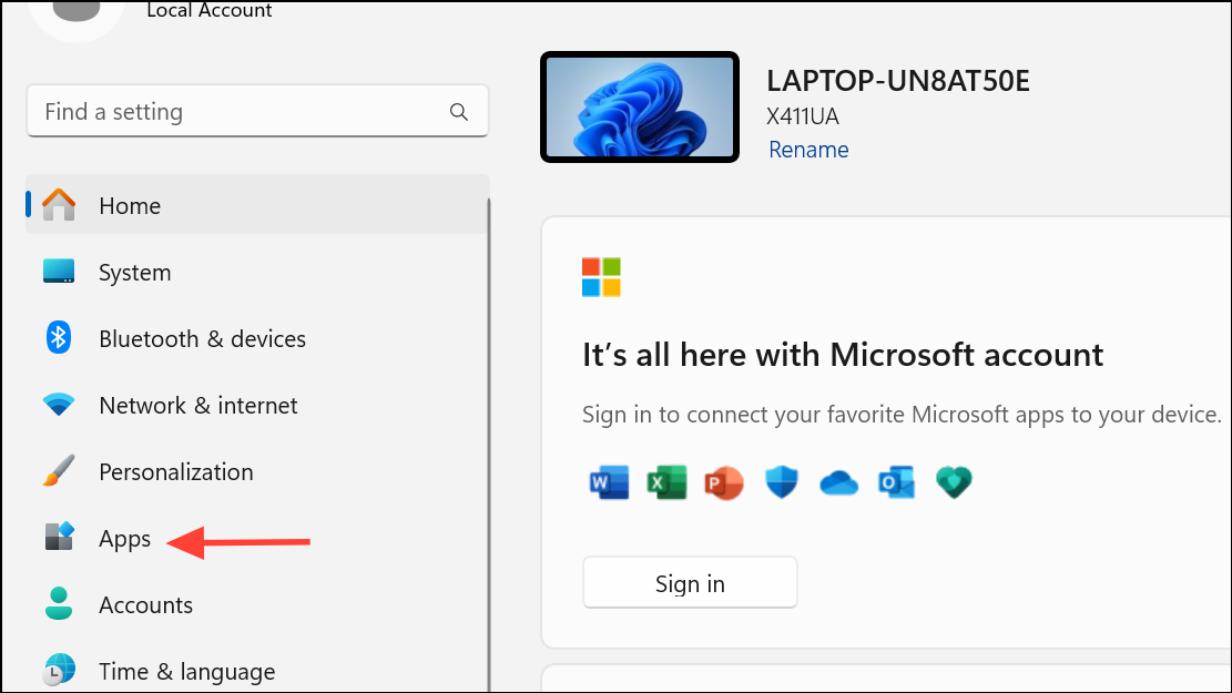 Step 1: Click Start and open Settings, then go to Apps.