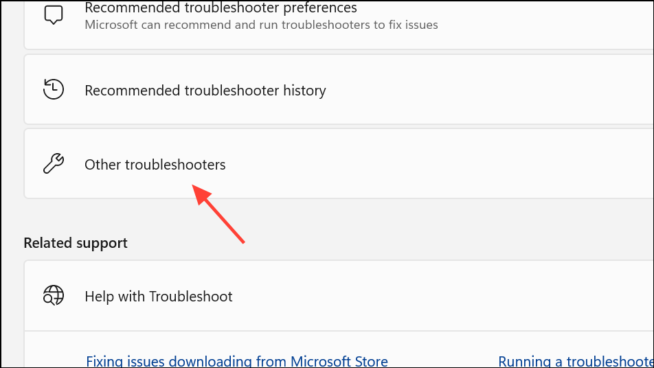 Step 2: Select Other troubleshooters or Additional troubleshooters.