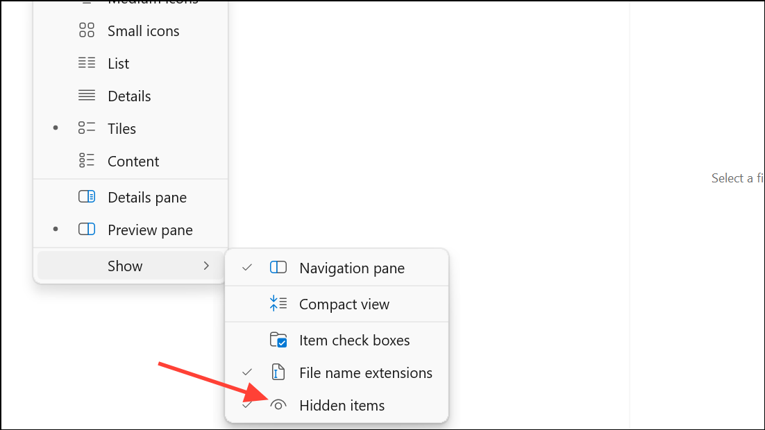 Step 3: Open File Explorer and enable Hidden Items from the View tab.