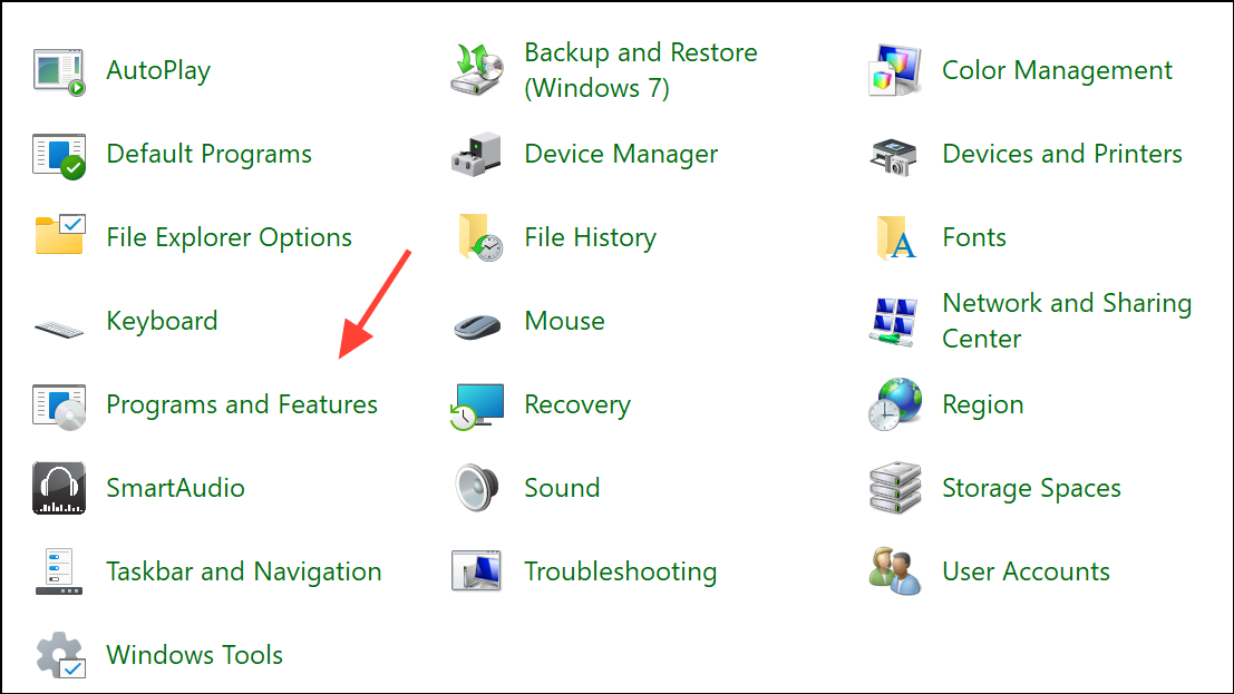 Step 1: Open Control Panel and go to Programs and Features.