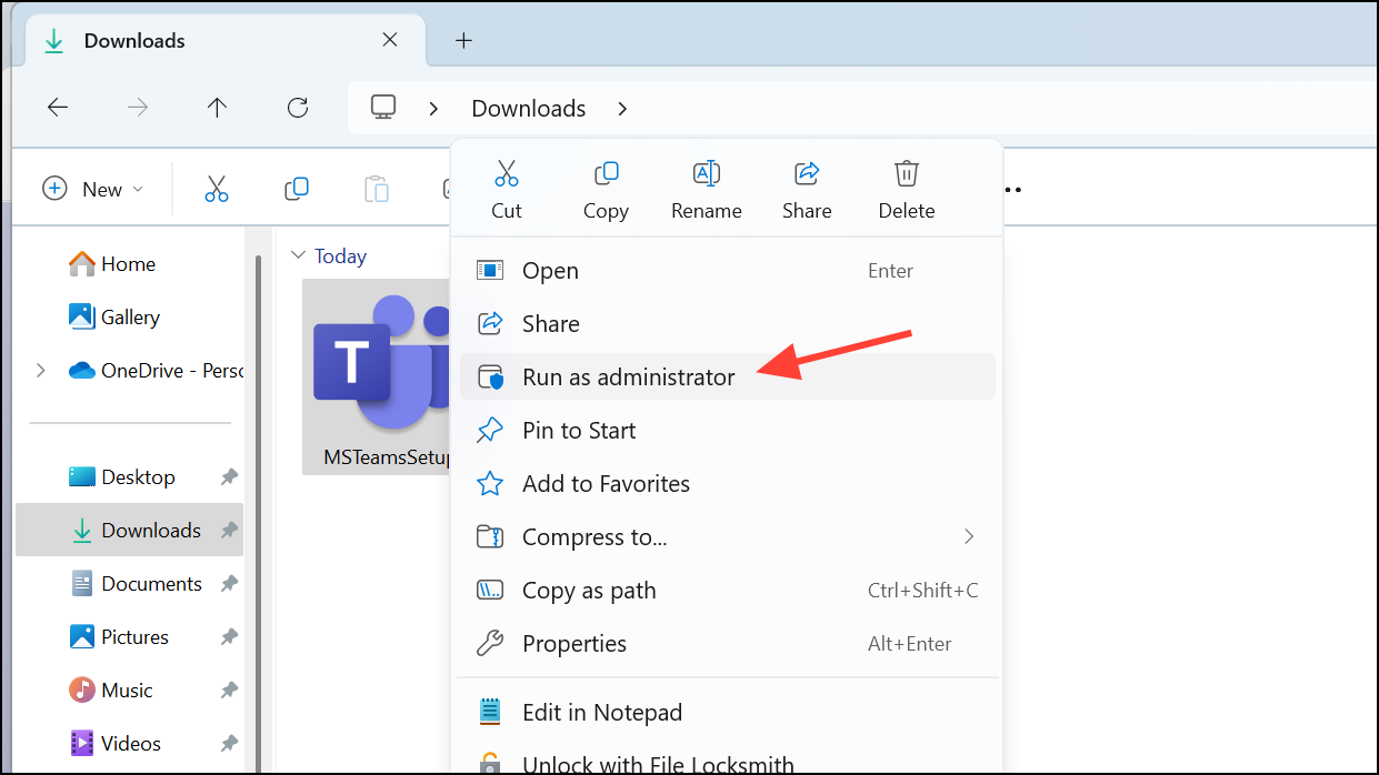 Step 1: First, locate the Microsoft Teams installation file you downloaded (usually found in your Downloads folder). Right-click on the installation file and select "Run as administrator". Running the installer with administrative privileges often resolves permission-related issues that cause installation failures.