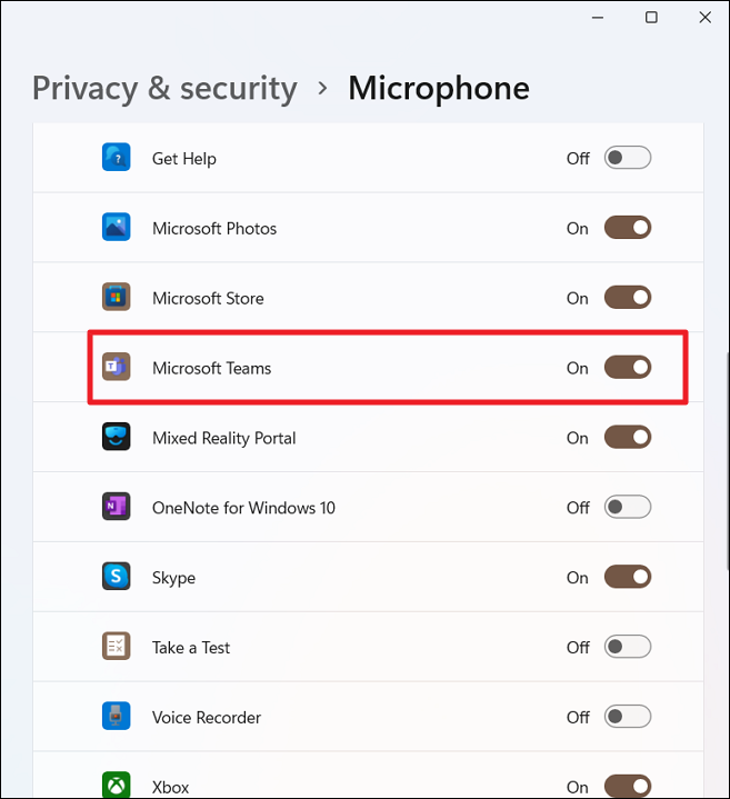 Then, scroll down the list of apps and enable the toggle for ‘Microsoft Teams’.
