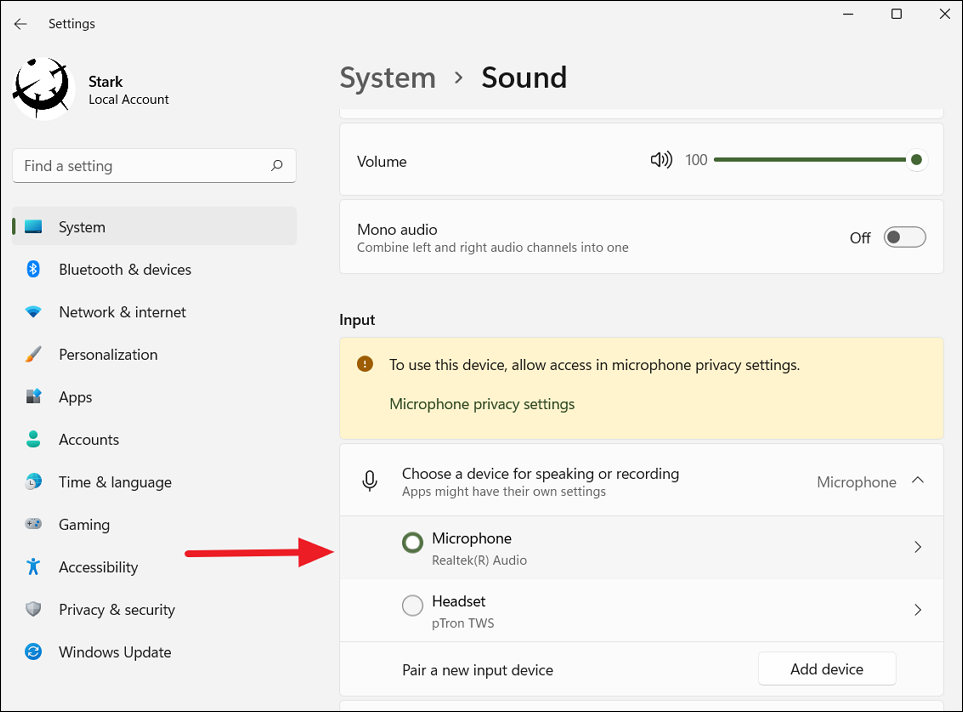 Running the recording audio troubleshooter can fix most of the common microphone-related issues that you might experience. Follow these instructions to run the input audio troubleshooter: