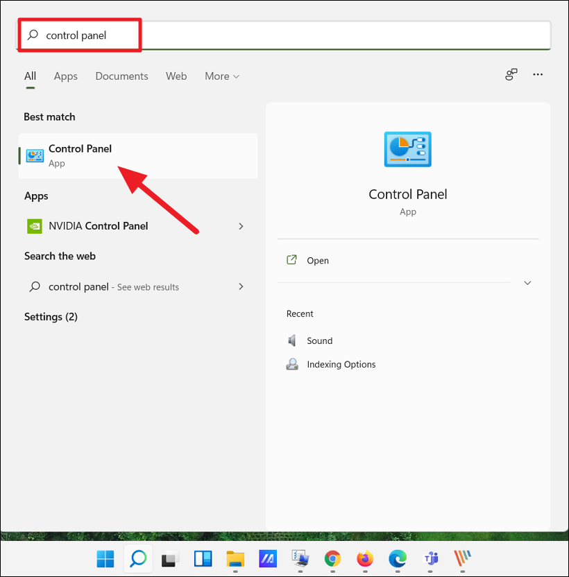 First, search for ‘control panel’ in the Windows search and choose ‘Control Panel’ from the results to launch it.