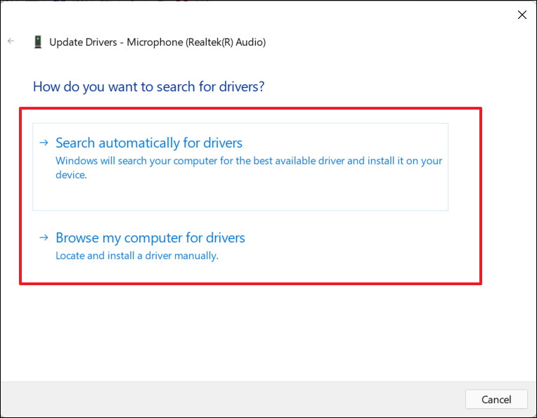 If you are using a USB microphone or webcam, you can visit the manufacturer’s website and search for the latest version of the driver for your Windows version (e.g., Windows 11 64bit).