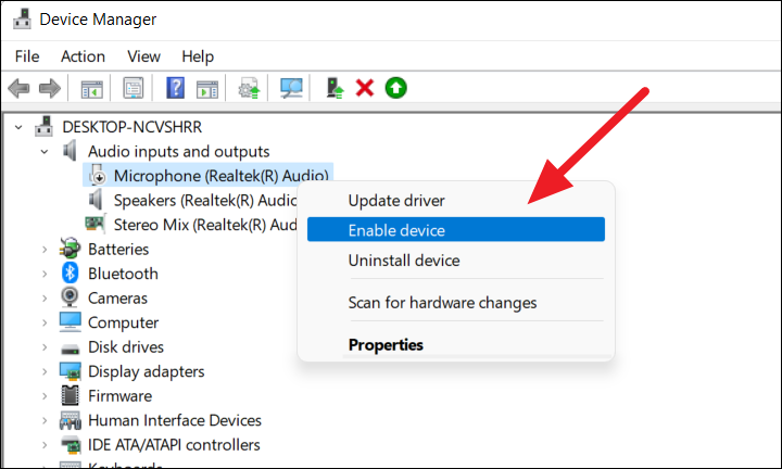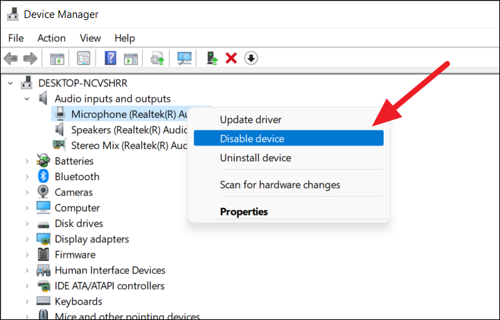 You also try disabling and enabling the input device and see if it fixes the microphone problem. Right-click on the microphone device and select ‘Disable device’.