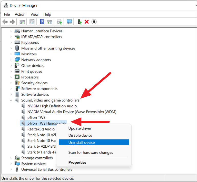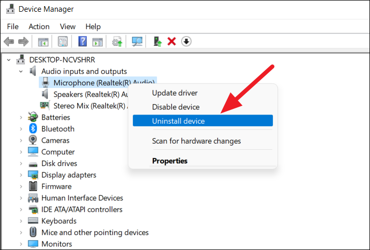 To uninstall a device, right-click on the microphone and select the ‘Uninstall device’ option.