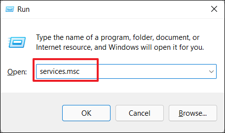 First, open the Run command box by pressing Win+R and type services.msc and then press Enter.