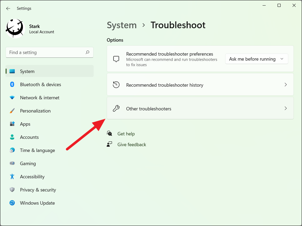 In the Troubleshoot windows, select the ‘Other troubleshooter’ option (for Windows 11). If you are using Windows 10, click the ‘Additional troubleshooters’ option.