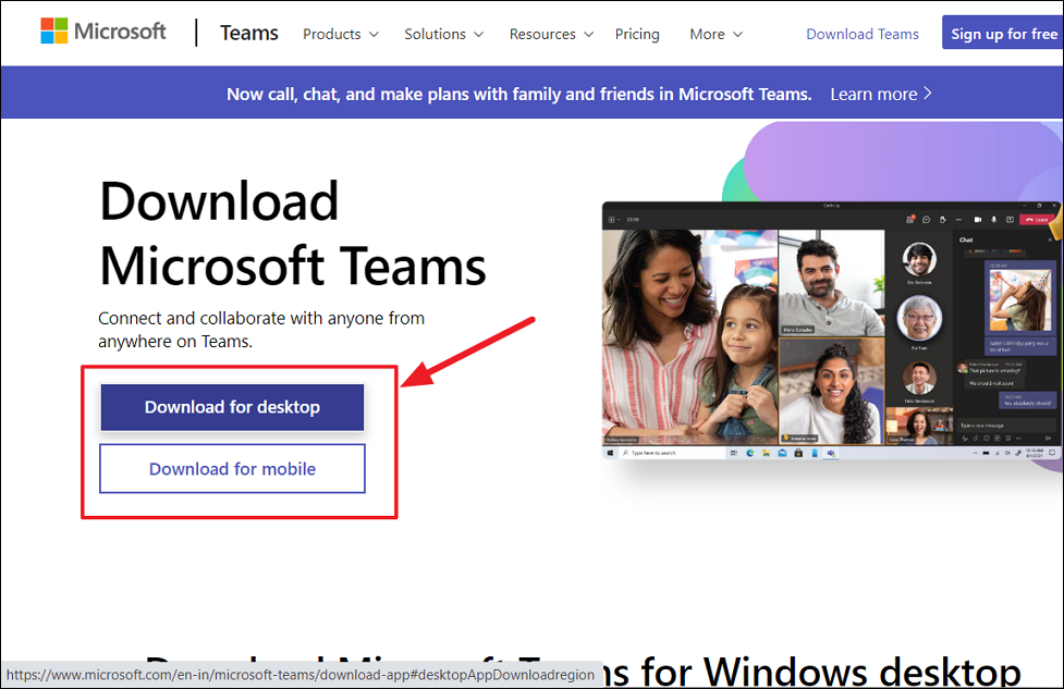 To install the app, go to the Microsoft Teams official website and click ‘Download for desktop’ for the desktop version.