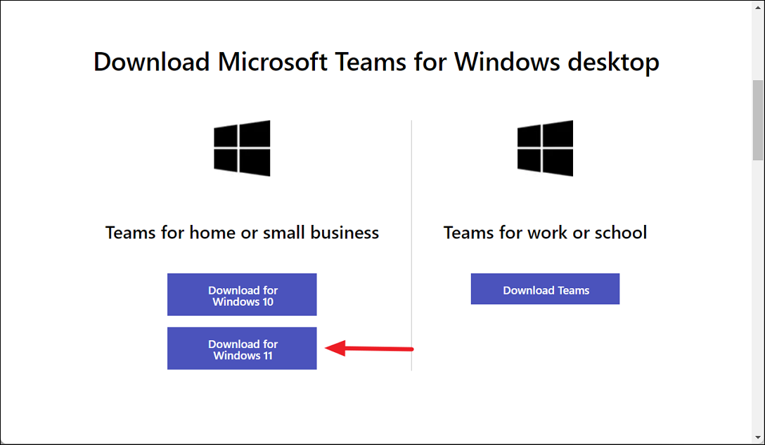 Then, choose the edition for MS Teams app (like, for Windows 11) on the next page.