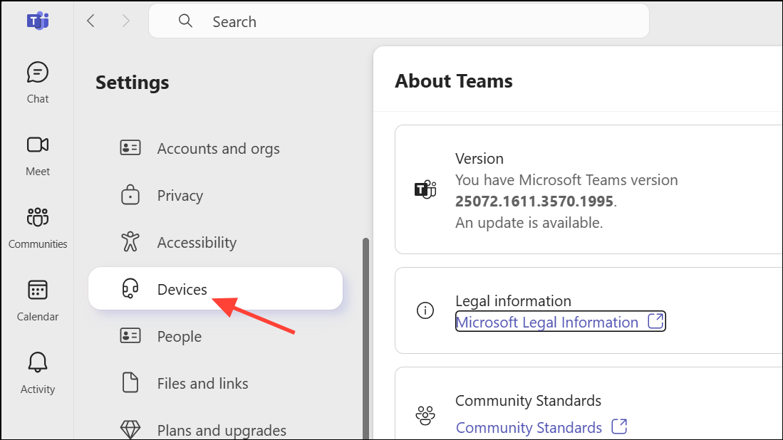 Step 1: Ensure Microsoft Teams is up to date. In the Teams app, click your profile picture, select Settings, then About > Version, and check for updates.