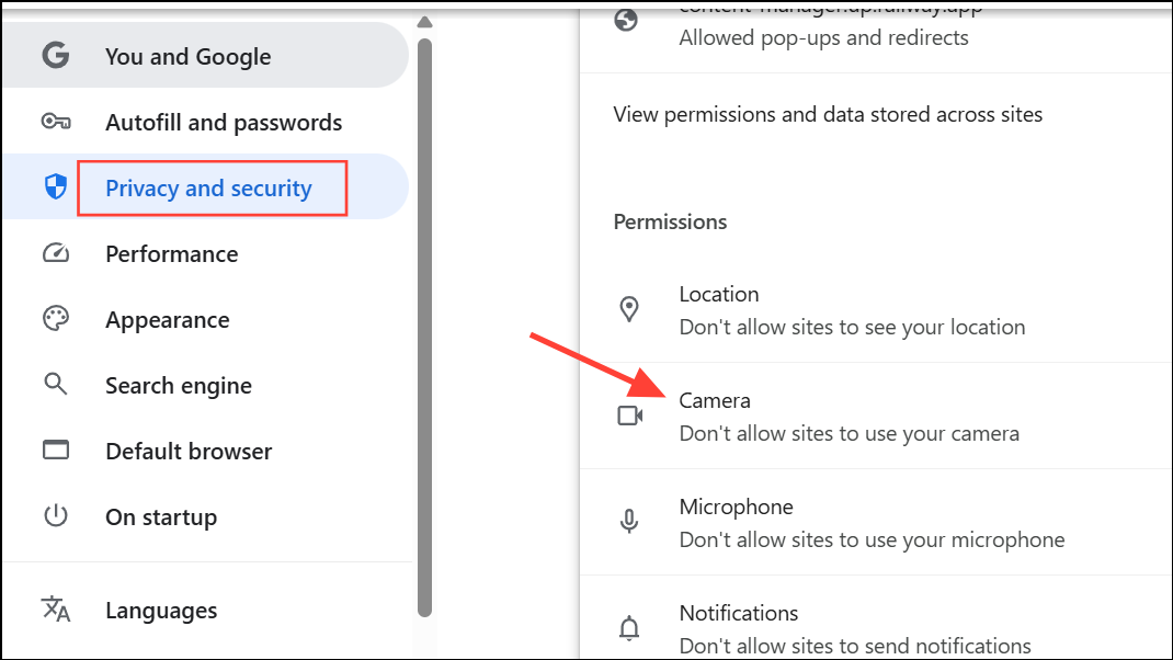 Step 1: Check browser permissions for camera and microphone. In Chrome, go to Settings > Privacy and security > Site settings > Camera and Microphone, and ensure Teams is allowed. In Edge, use Settings > Cookies and site permissions.
