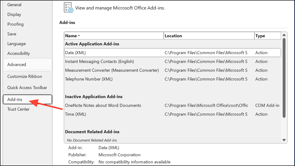 Open Microsoft Word in Safe Mode and Disable Add-Ins