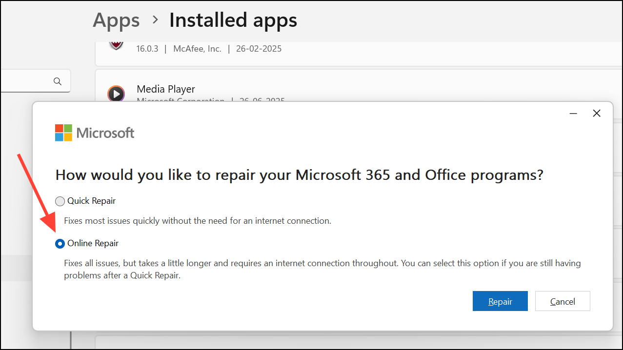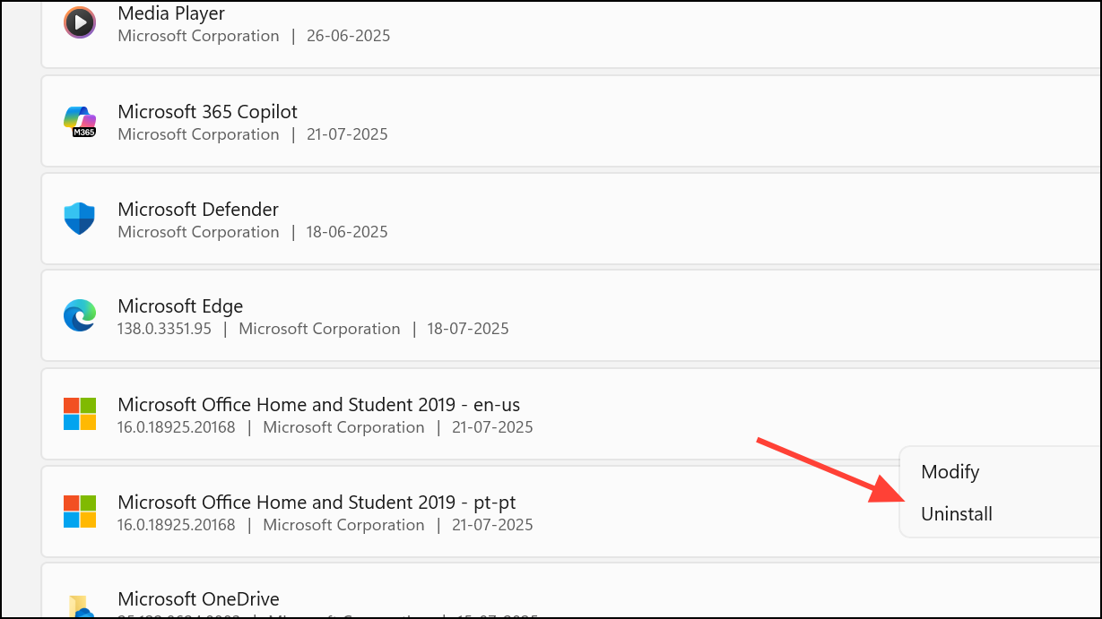 Step 3: If repairing fails, uninstall Office by selecting it in Settings or Control Panel and clicking Uninstall. Restart your PC, then download the latest version from the official Microsoft Office website. Install Office and sign in with your Microsoft account. Keep your product key or credentials handy for a smooth setup process.