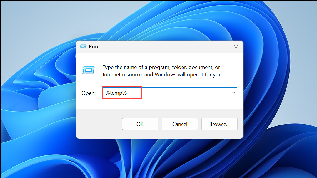 Step 1: Press Windows + R, type %temp%, and press Enter.