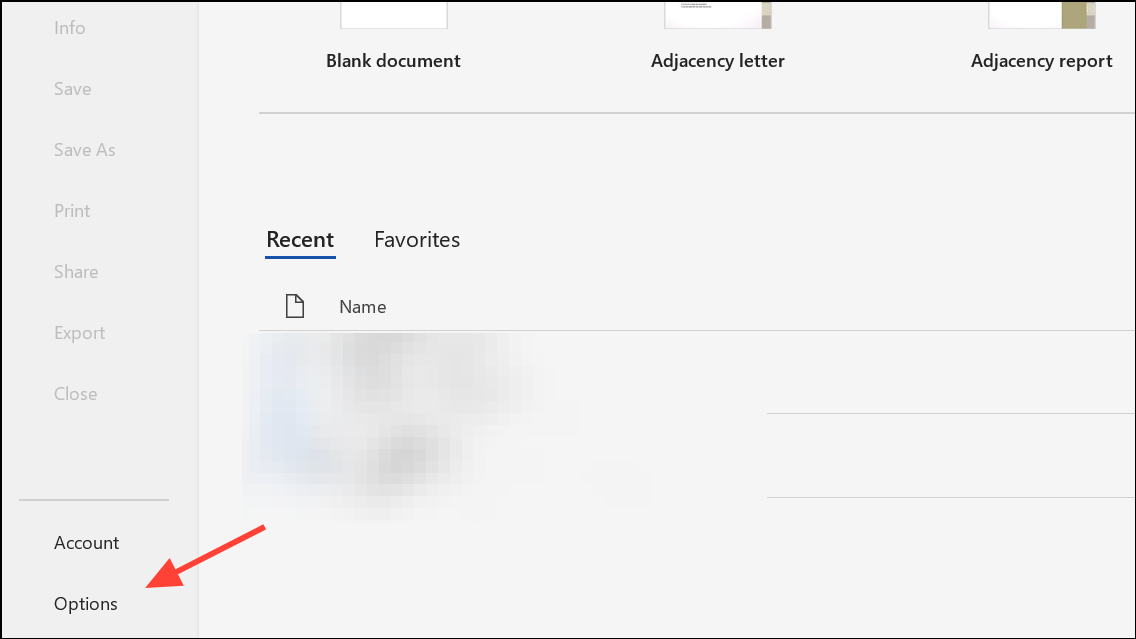 Step 1: Close all Word documents. Open Word, click the File tab, then choose Options.