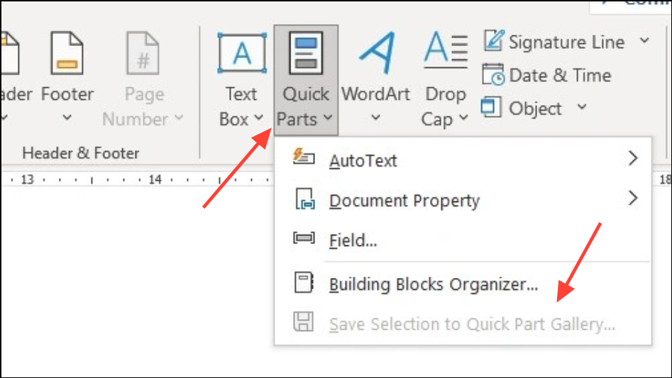 Step 6: For repeated use, select both the signature image and any accompanying text (such as your name or title), then use Insert > Quick Parts > Save Selection to Quick Part Gallery (Windows) or AutoText (Mac) to create a reusable signature block.