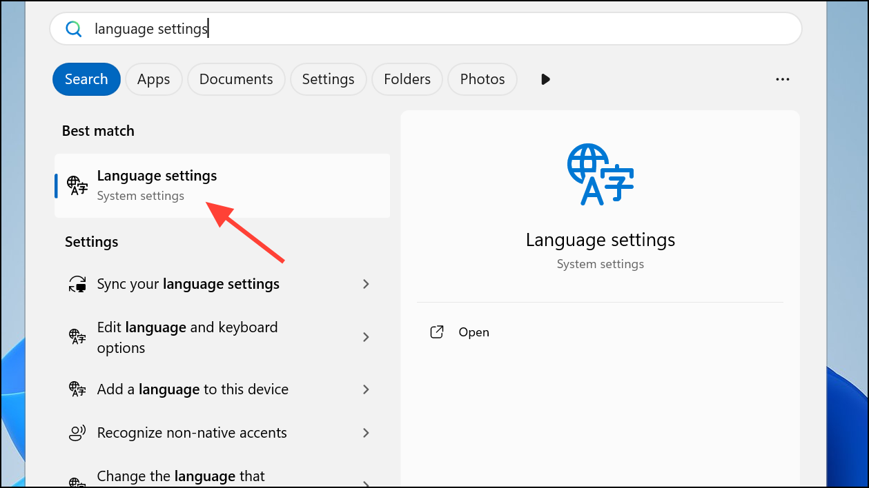 Step 1: Open the Start menu, type “language settings,” and select the result.