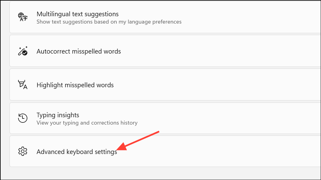Step 2: Scroll down to “Typing,” then click “Advanced keyboard settings.”