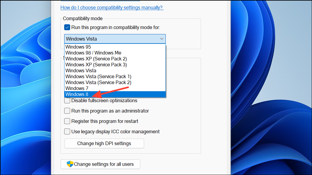 Step 2: If problems persist, right-click the executable, go to Properties > Compatibility, and enable Run this program in compatibility mode for: choosing Windows 8 or Windows 7. This can resolve compatibility issues with certain hardware or driver configurations.