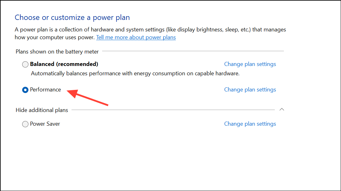 Step 1: Open Control Panel > Power Options and select High performance. Power-saving modes can throttle CPU or GPU resources, causing the game to crash or fail to launch.