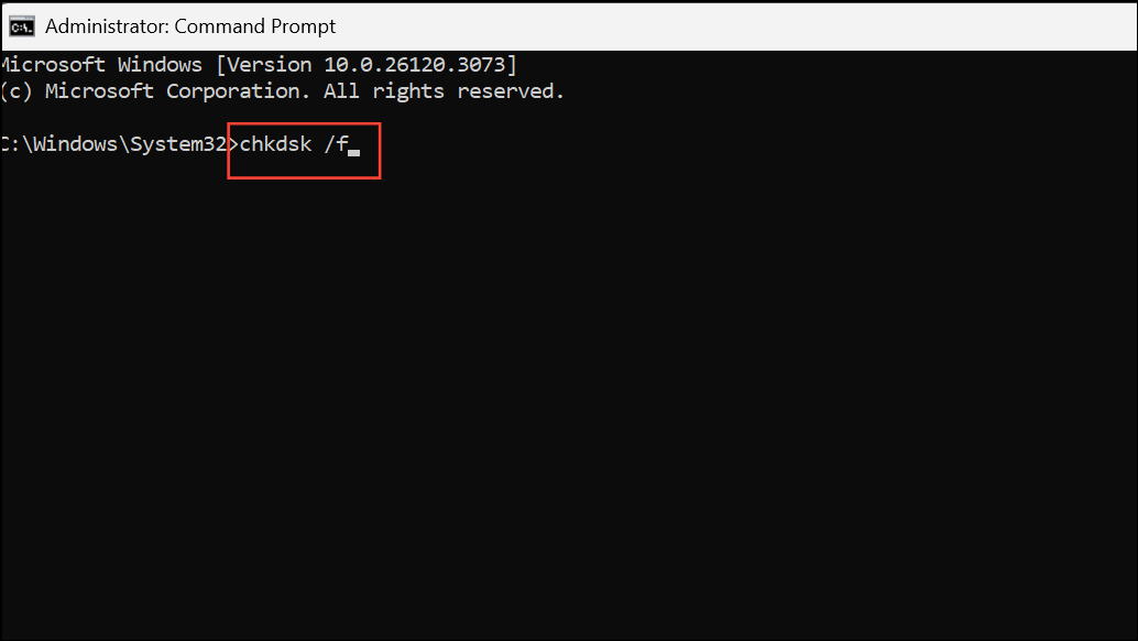 Step 2: Open Command Prompt as administrator and run chkdsk /f to check for disk errors. Faulty SSDs or HDDs can cause game files to become unreadable, resulting in launch failures or unexpected crashes.