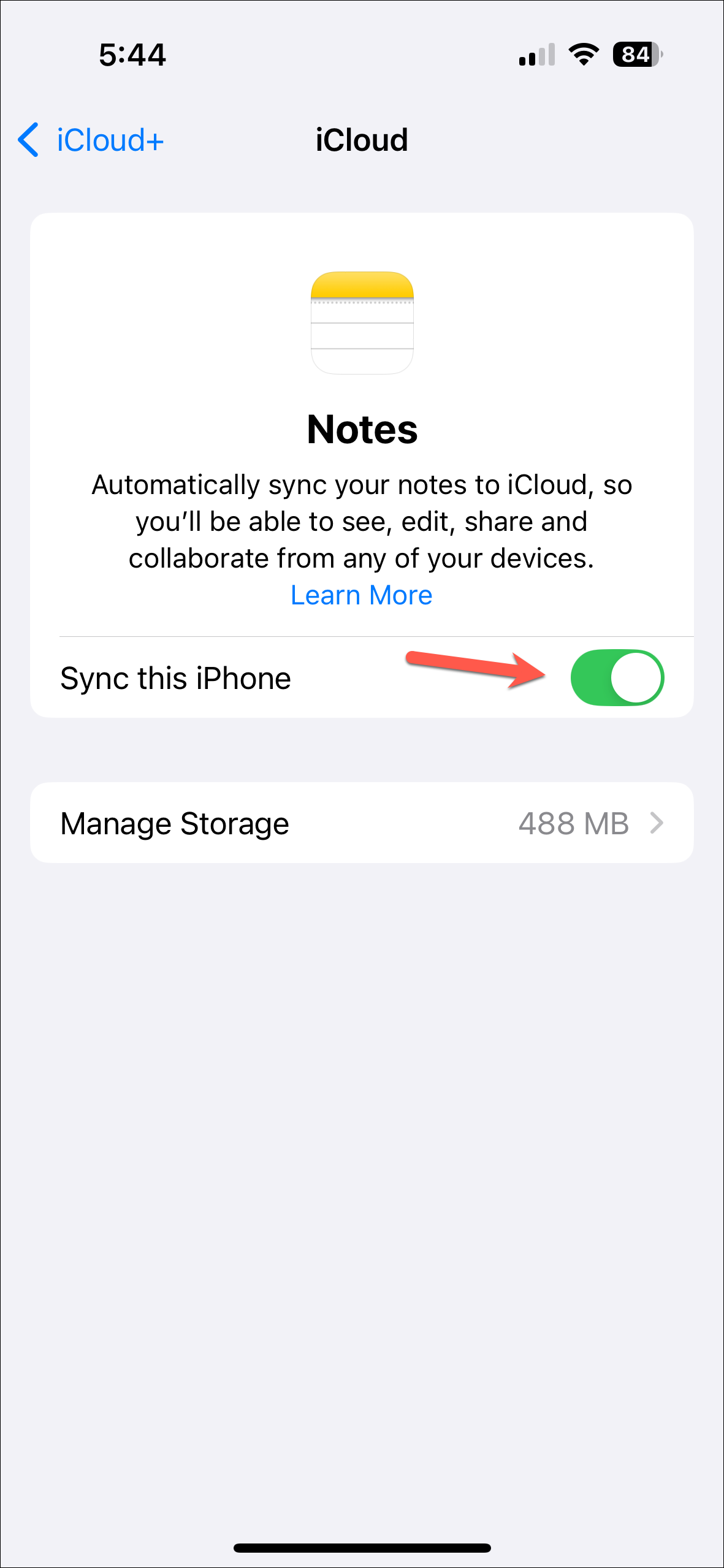 - Make sure the toggle for 'Sync this iPhone' is on. If it isn't, turn it on and go to the Notes app. Your notes should start to appear.