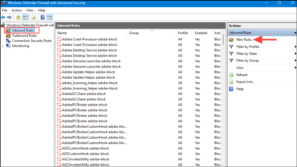 Step 4: Click on Inbound Rules on the top left and then on New Rule on the top right. Now, you can add Monster Hunter Wilds as an exception by following the steps on your screen.